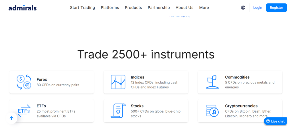 Admirals offers US, UK, and EU stocks as CFDs. CFDs or contracts for difference are super speculative instruments. They offer the ability to trade the underlying assets without directly owning the asset itself. The difference between CFDs and other instruments is that CFDs can be shorted meaning that traders can profit from both bull and bear markets. In addition, stock CFD traders on Admirals can benefit from using leverage, with trading fees for stock CFDs varying from 0.1% to 0.15%.