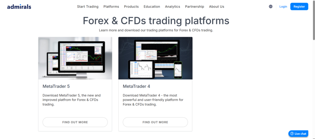 - Offers access to MetaTrader 4, MetaTrader 5, Web trader, iOS and Android, HarmonyOS apps