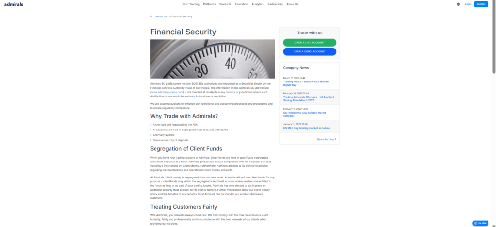 Admiral Markets keeps clients’ funds in segregated accounts, is part of the investor compensation fund, and provides negative balance protection for retail clients only.
