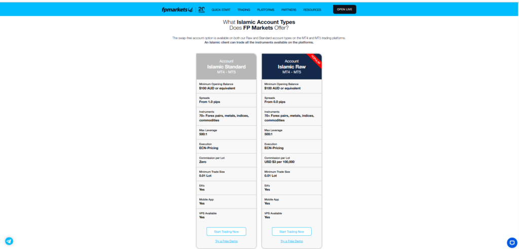 For Muslim accounts, FP Markets offer the MetaTrader 4 and MetaTrader 5 platforms. Keep in mind that the broker does not provide swap-free accounts on its Iress platform.