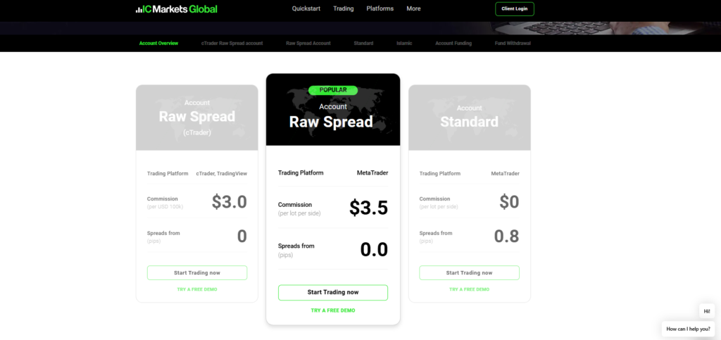 IC Markets offers 3 types of accounts, namely cTrader, Raw, and Standard. Each account type is designed to meet the needs of a specific trader.