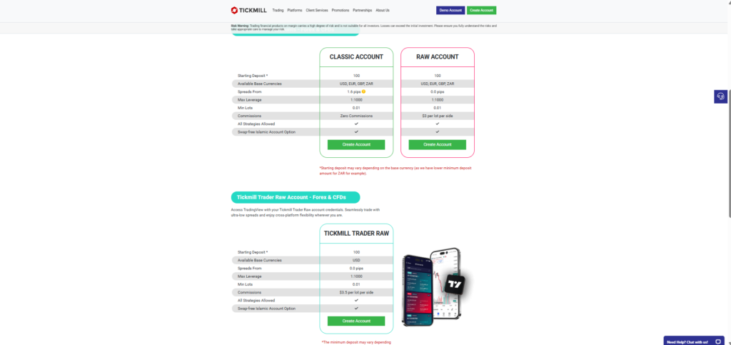 Most traders prefer brokers that offer more than one type of account, this also helps the broker attract different classes of traders. Tickmill’s account options are suitable for beginners and professionals. Tickmill broker offers three types of accounts for a trader to choose from, all of them including a maximum leverage of 1:500. However, the maximum leverage may change according to the traded asset and the local regulations.All three types of accounts share the same trading software options, namely MetaTrader and MT WebTrader. Every account type has the same access to financial markets and they all rely on CFD trading without any direct market access.Similarly, every account has the same access to educational materials, webinars, and tutorial videos.